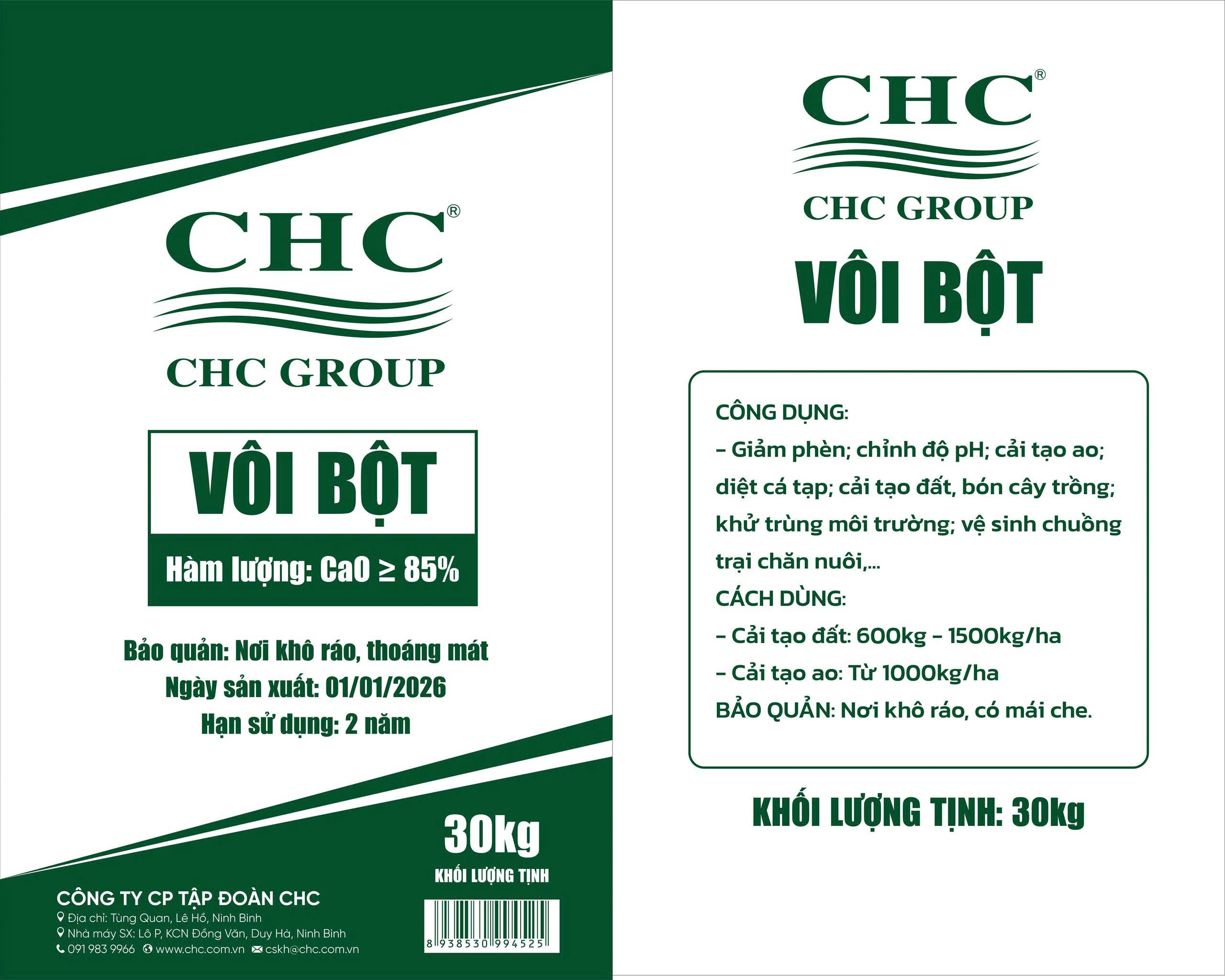 Vôi Bột CHC là một trong những sản phẩm chủ lực thuộc hệ sinh thái vật tư nông nghiệp – môi trường của CÔNG TY CỔ PHẦN TẬP ĐOÀN CHC. Với dây chuyền sản xuất hiện đại, nguồn nguyên liệu tuyển chọn và quy trình kiểm soát nghiêm ngặt, Vôi Bột CHC đáp ứng đầy đủ các tiêu chuẩn chất lượng cho thị trường trong nước và xuất khẩu.